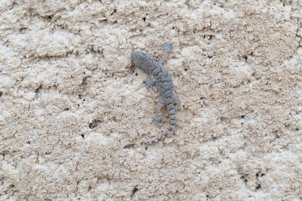une rencontre inattendue : une Tarente de Maurétanie sur le mur extérieur de la maison, un support chaud et sec par ces temps pluvieux !